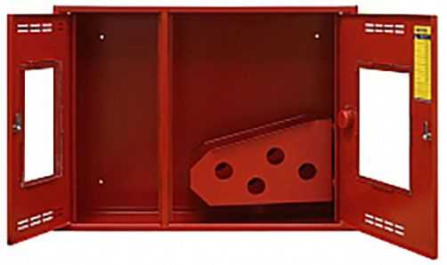 Шкаф 02-Н с кассетой для рукава, информационная этикетка "Пожарный кран", информационная этикетка "Огнетушитель"
